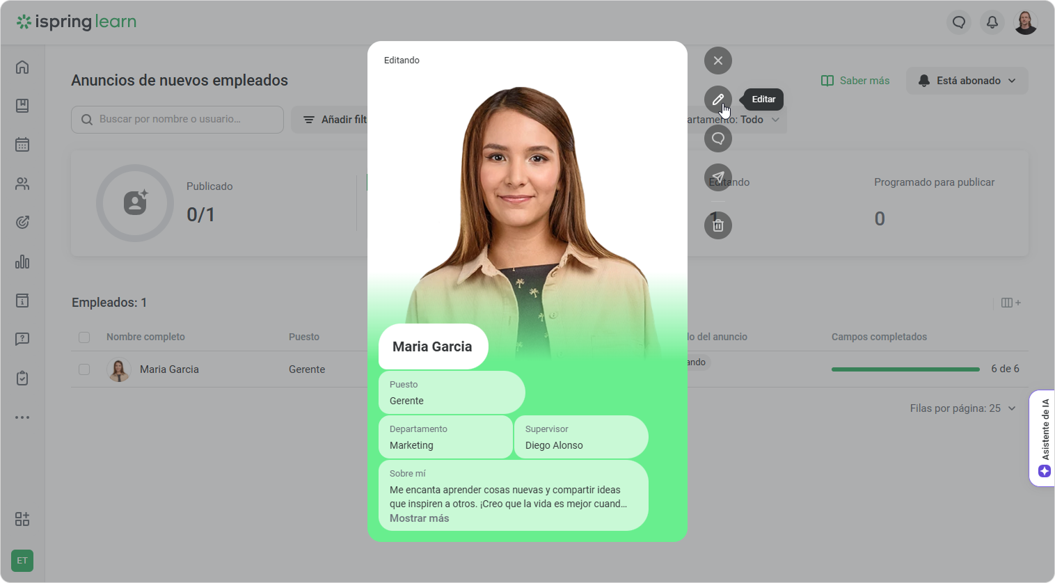 5. Si un anuncio de nuevo empleado ya ha sido publicado, aún puede editarlo.
