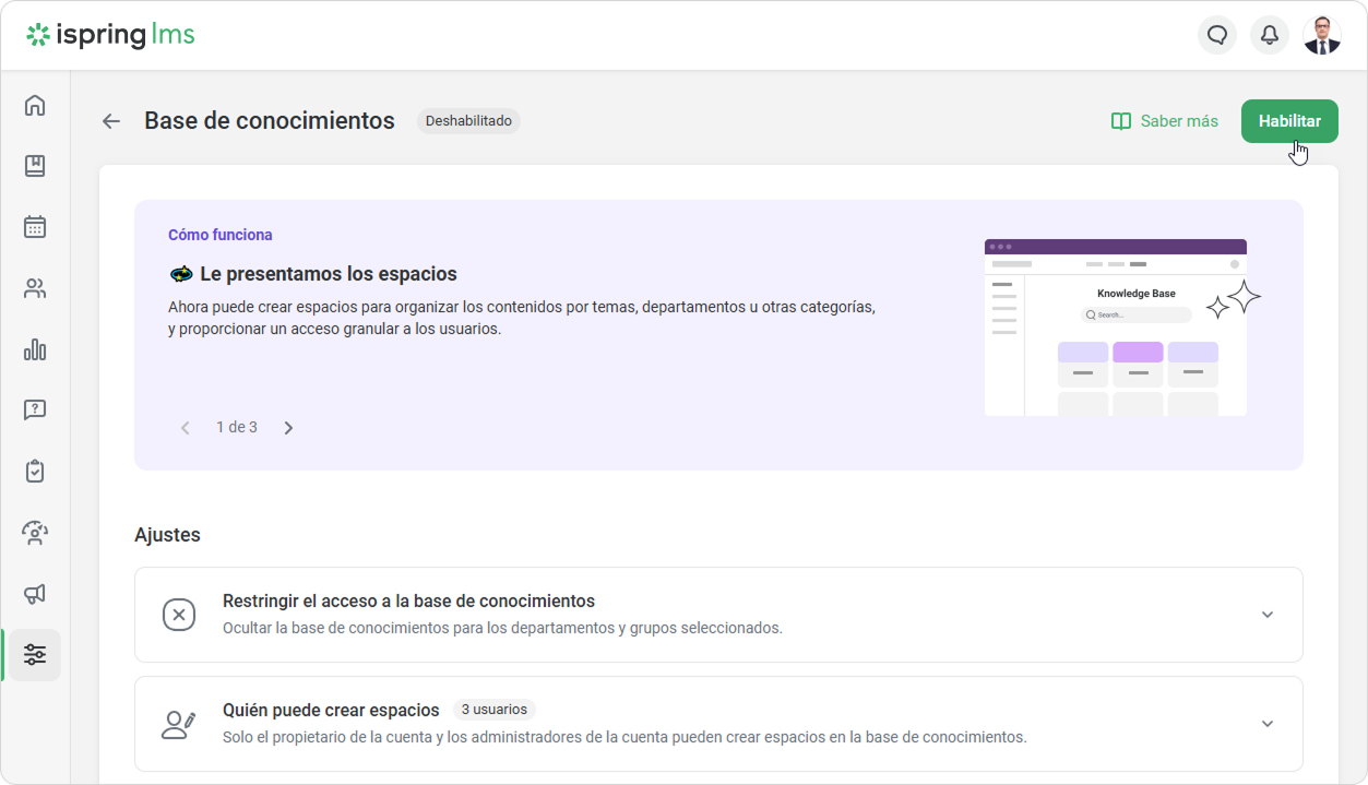 ¡Listo! Ha habilitado la Base de conocimientos.