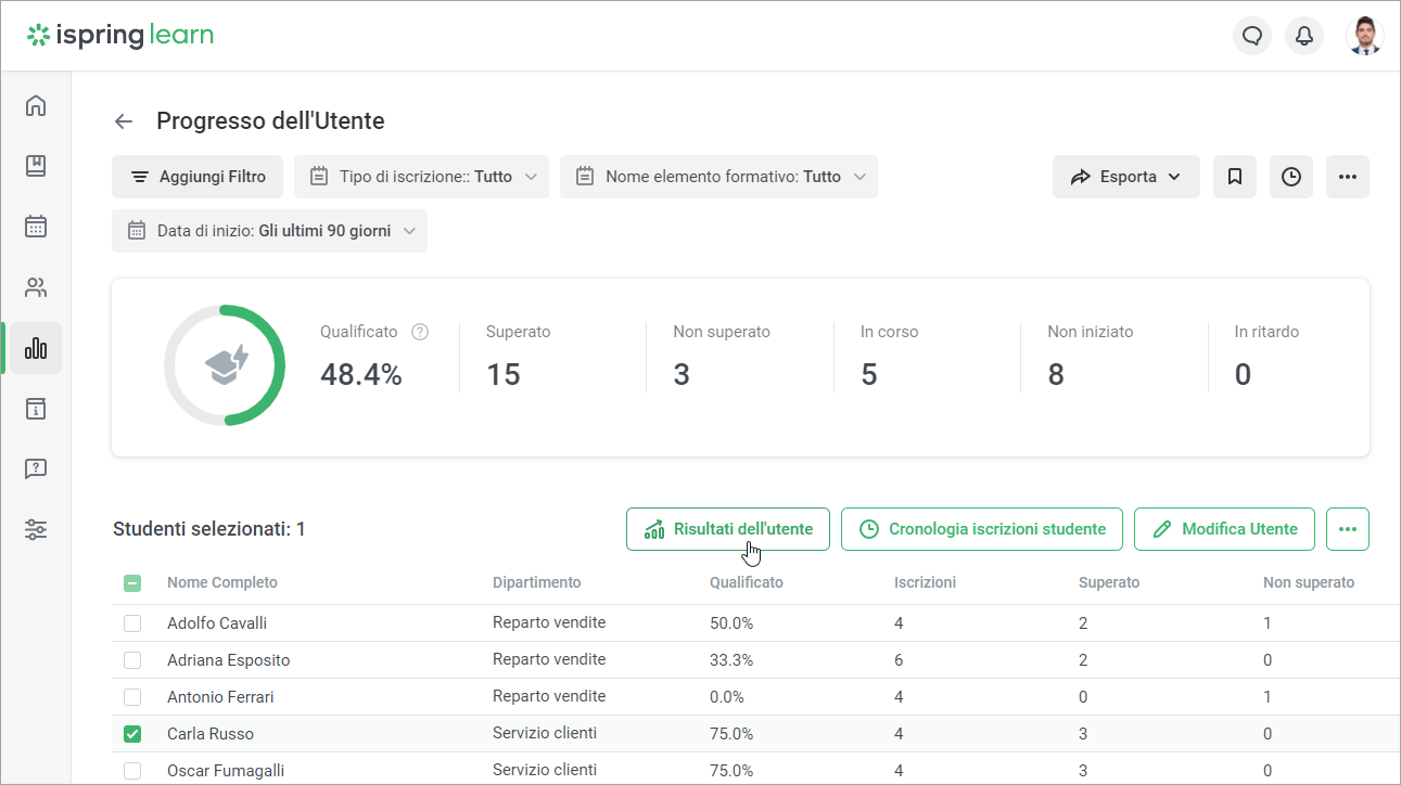 - Vai al report Risultati dell'utente.