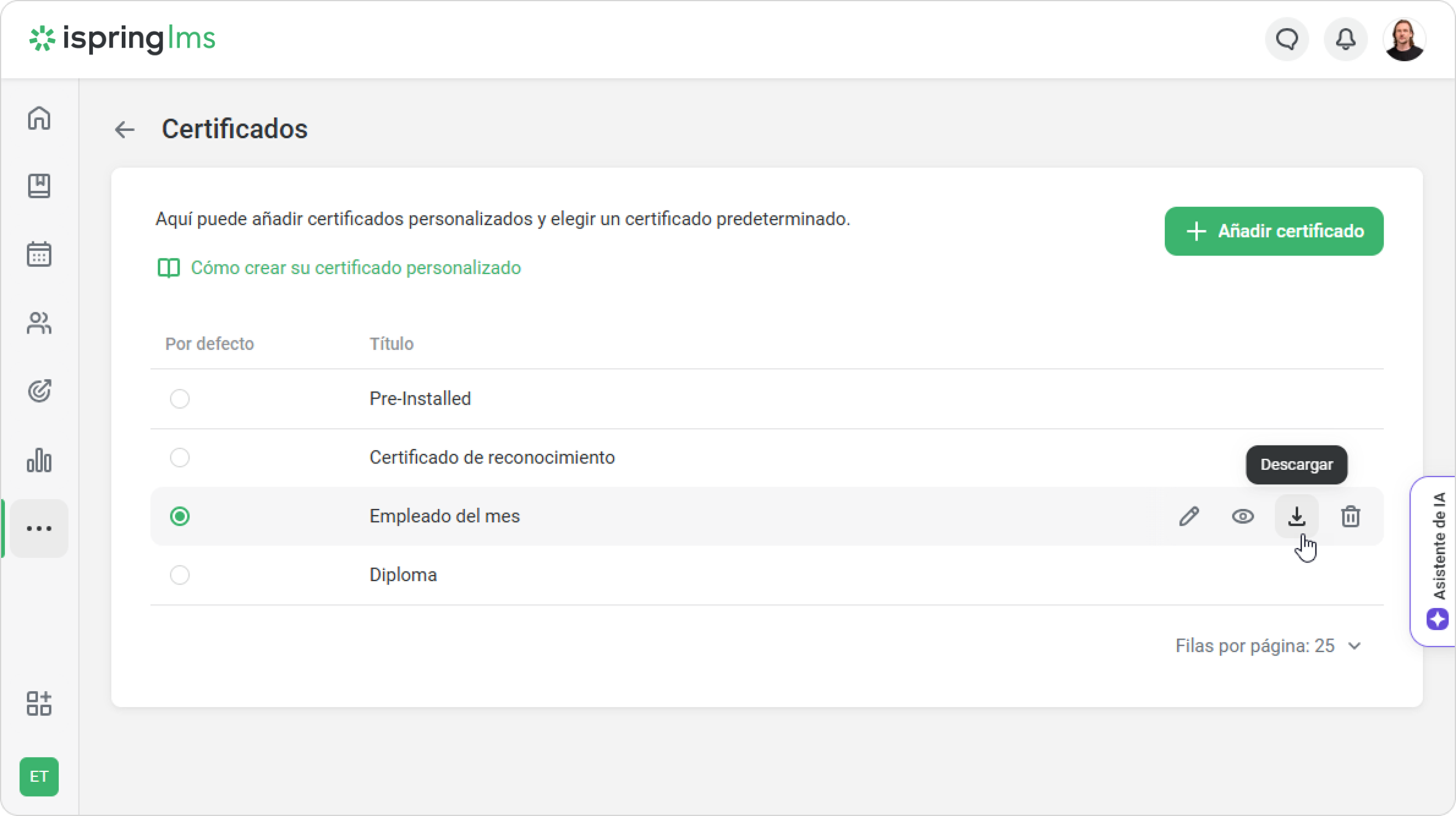 6. Una vez que haya creado el certificado, súbalo a iSpring LMS.
