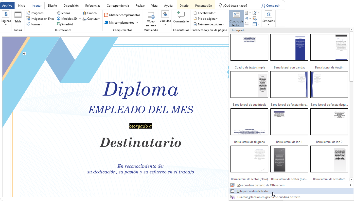 5. Después, guarde el certificado en formato .docx.
