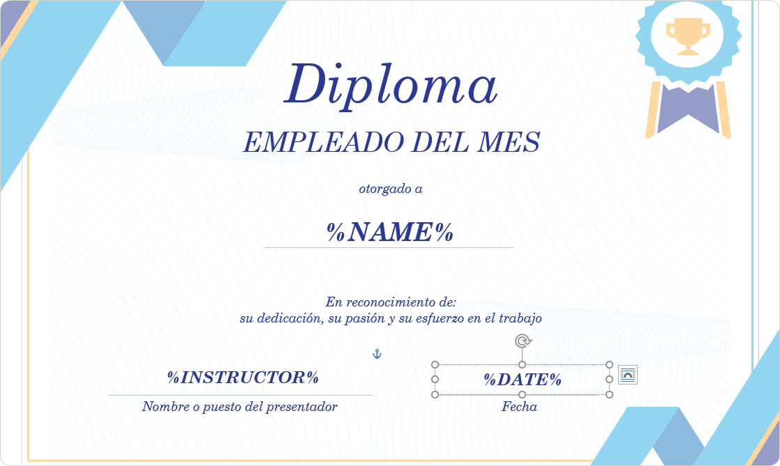 3. Inserte una variable. Por ejemplo, añada %NAME% para rellenar automáticamente el nombre y apellido del alumno. Después, elimine el relleno y el contorno del campo de texto.