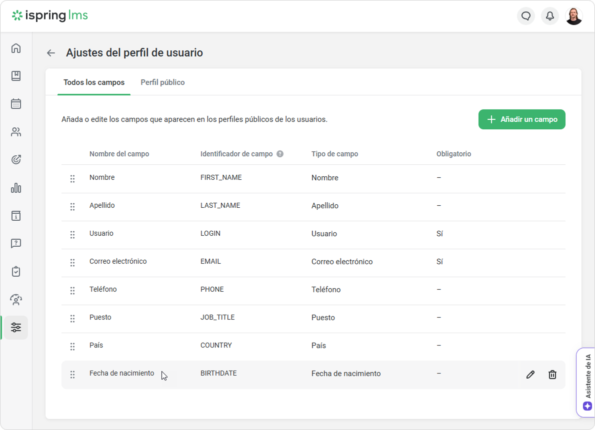 Para que el campo de fecha de nacimiento aparezca en la página de información personal del usuario:
