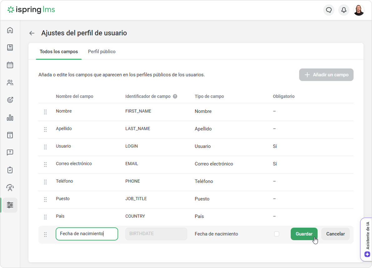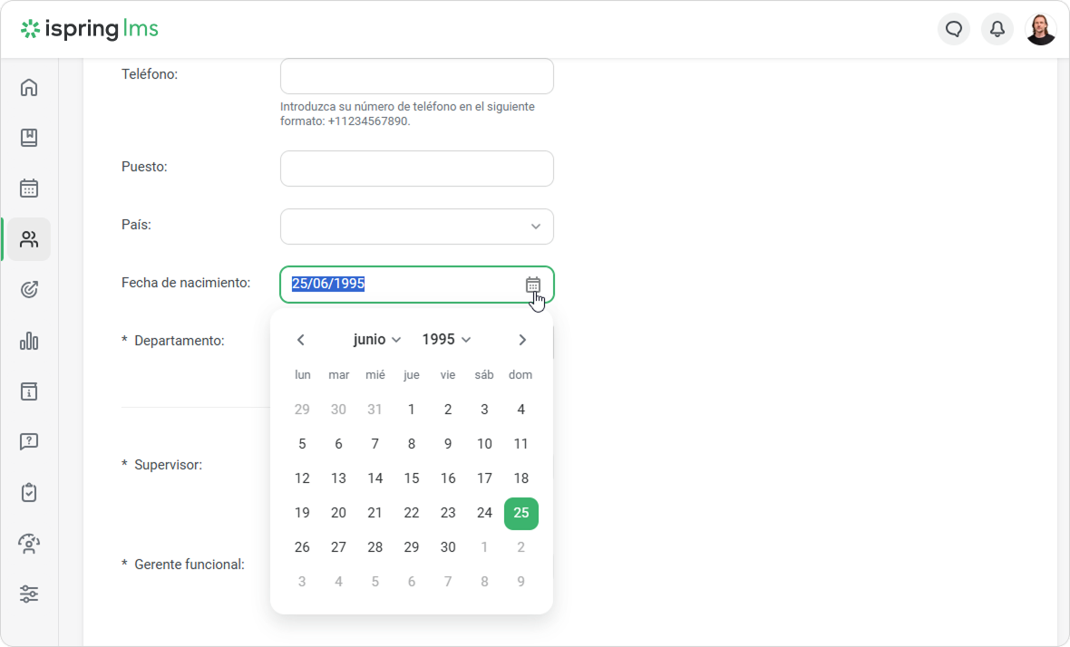¡Listo! Ahora, al añadir usuarios manualmente, a través de Excel y API, puede añadir su fecha de nacimiento.