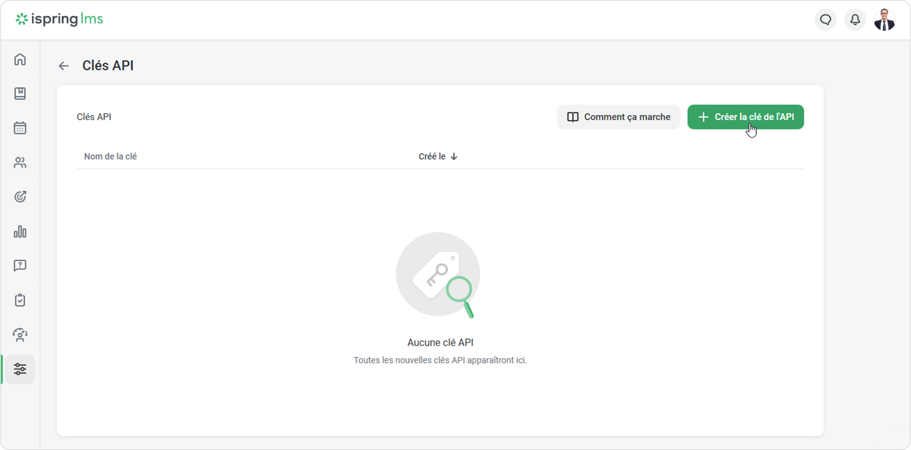 2. Faites défiler vers le bas jusqu'à la section Options complémentaires et cliquez sur Clés API.