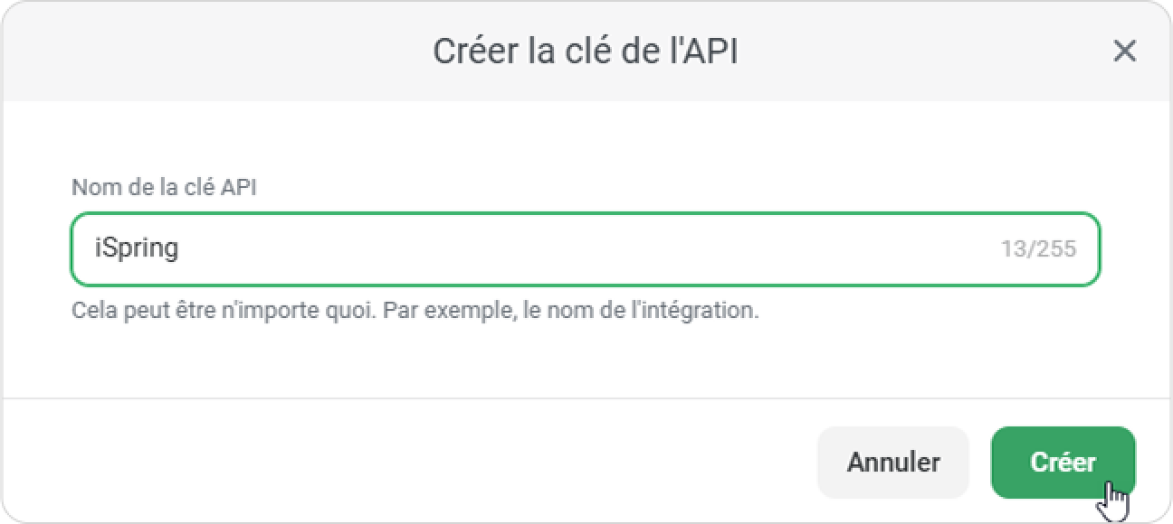 4. Entrez le nom de la clé API et cliquez sur Créer.