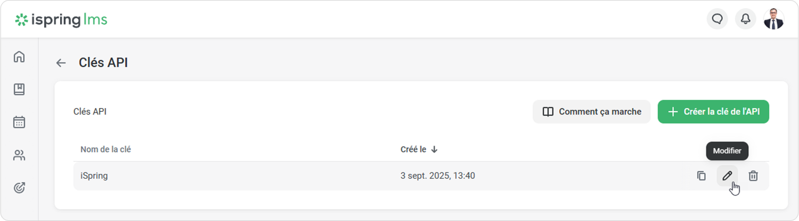 Vous pouvez changer le nom de la clé API. Cliquez sur l'icône de crayon et modifiez-le.