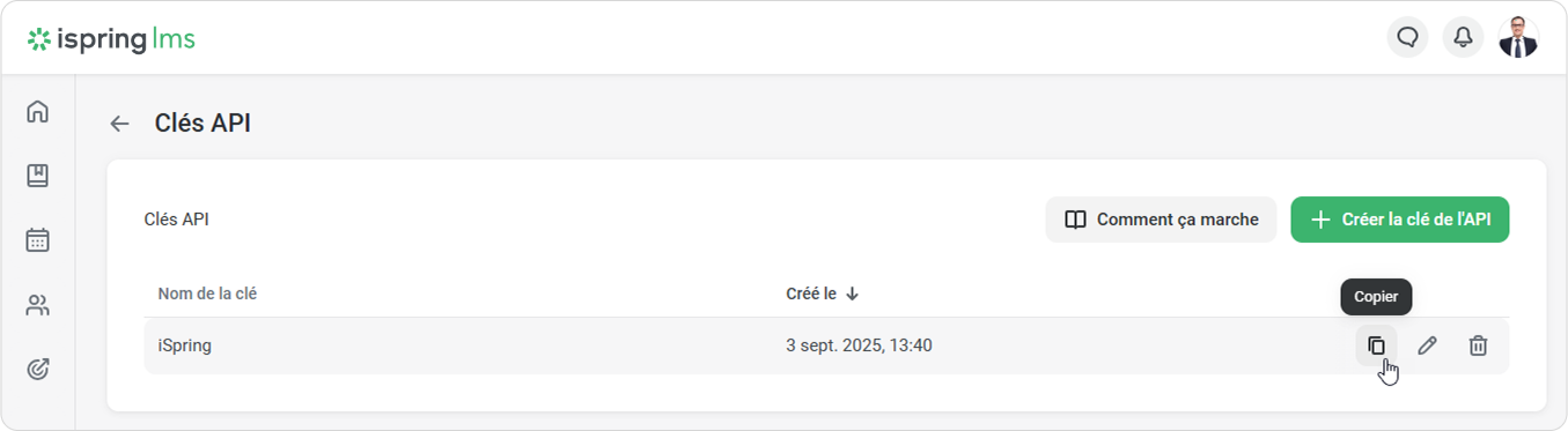 C'est terminé ! Vous pouvez maintenant utiliser la clé API pour configurer des intégrations ou pour obtenir un jeton d'accès. Pour ce faire, ouvrez la fiche de la clé API et copiez l'ID client et le secret client.