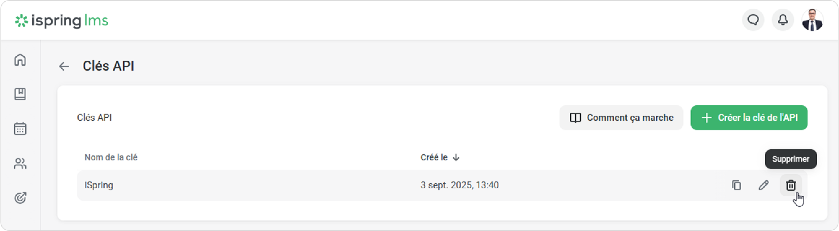 Vous pouvez également supprimer la clé API. Cliquez sur l'icône de la corbeille et Révoquez pour confirmer.