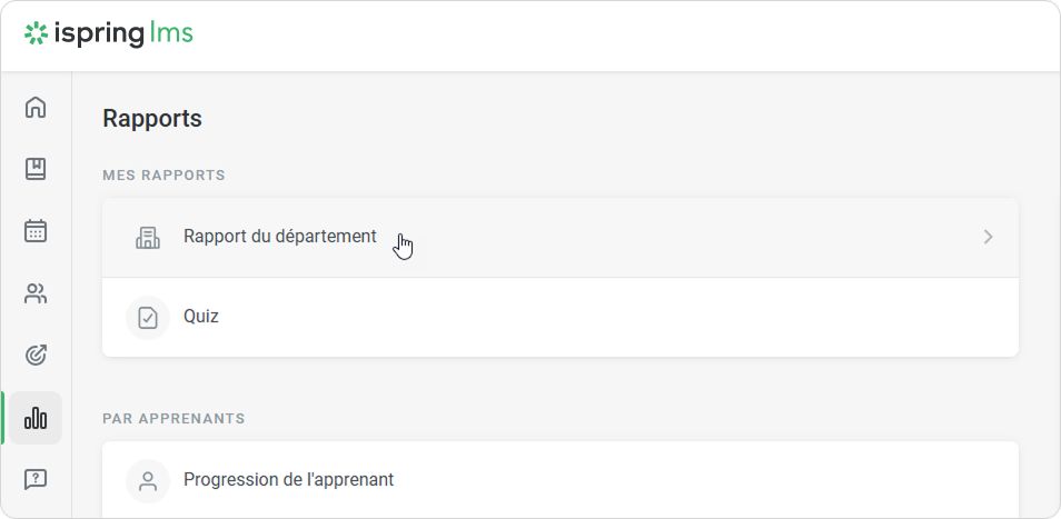 Avec un modèle de rapport enregistré, vous pouvez rapidement vérifier comment un utilisateur particulier ou un département entier progresse dans ses cours ou découvrir combien d'utilisateurs ont assisté aux événements le mois précédent.