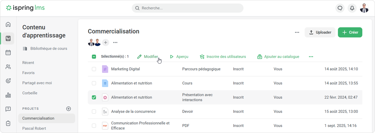 - Sélectionnez une présentation et cliquez sur Modifier.