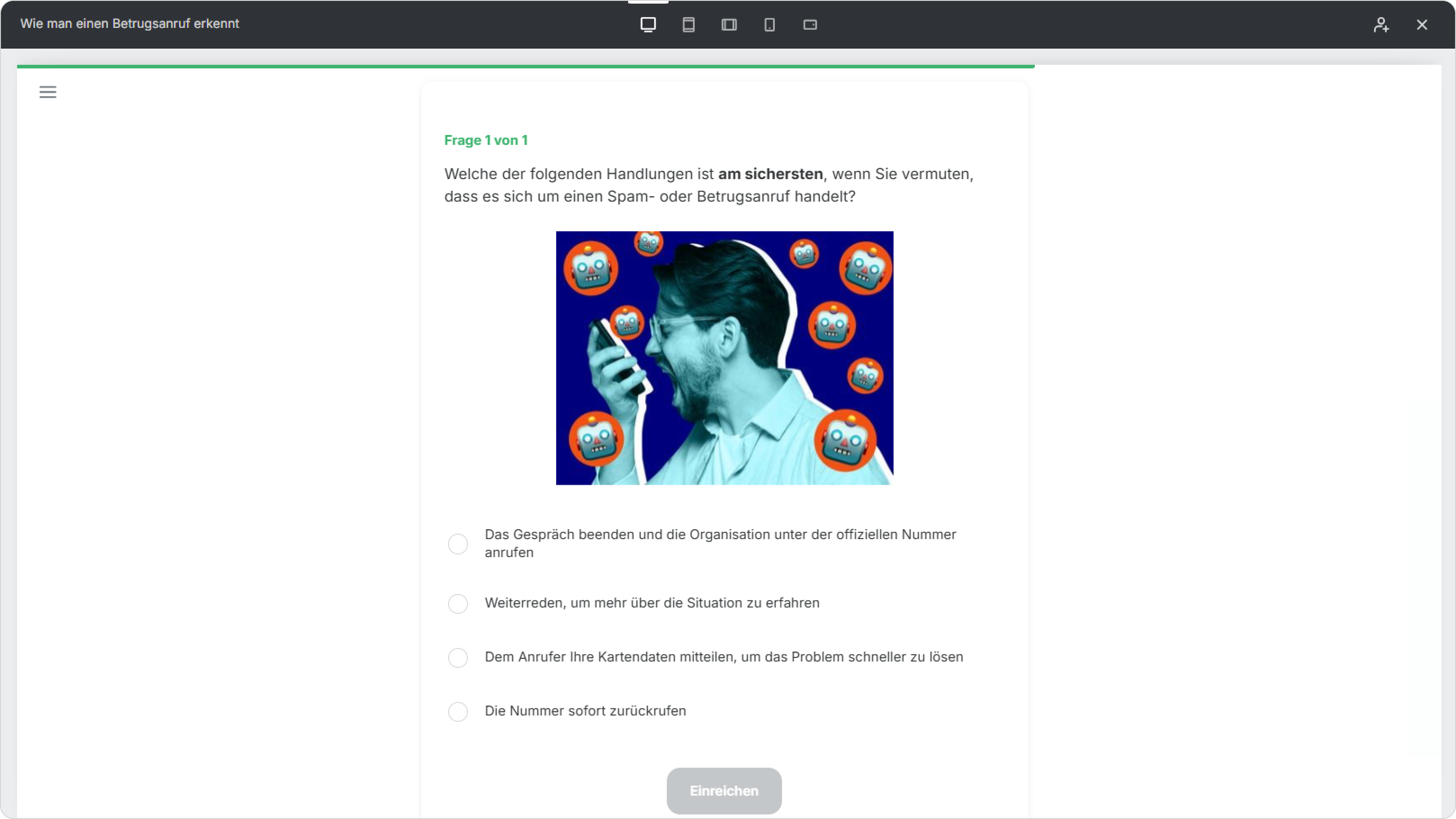Wenn Sie ein Quiz bearbeiten, können Sie es von Beginn an ansehen oder direkt zu einer bestimmten Frage springen — es ist nicht nötig, die gesamte Seite durchzublättern.