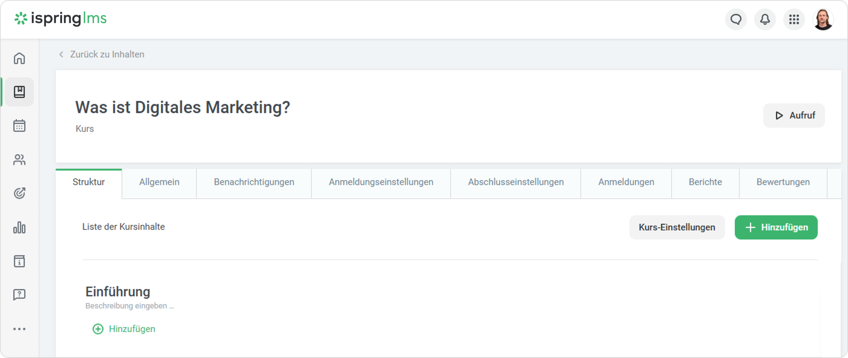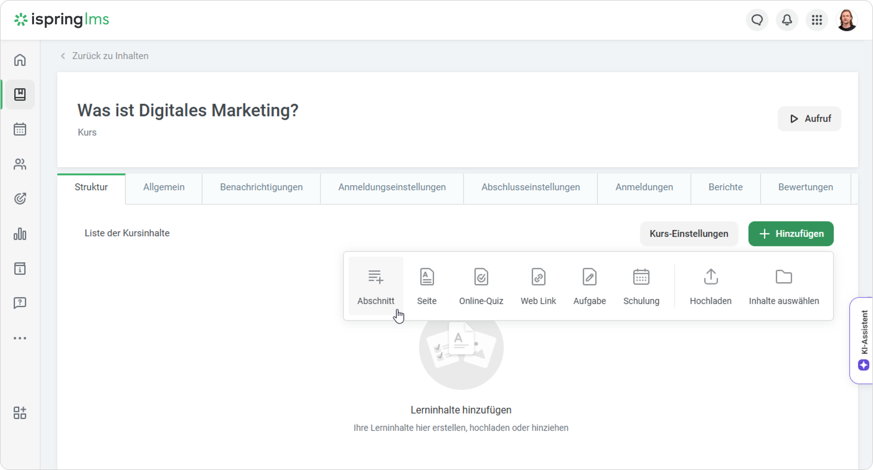 - Öffnen Sie die Registerkarte Struktur, klappen Sie das Menü Hinzufügen aus und wählen Sie Abschnitt aus.