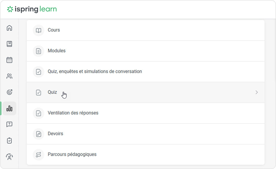 1. Ouvrez la section Rapports et cliquez sur Quiz.