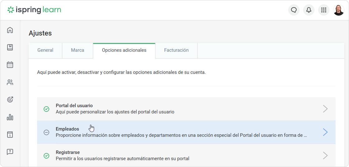 - Vaya a Ajustes > Opciones adicionales > Empleados.
