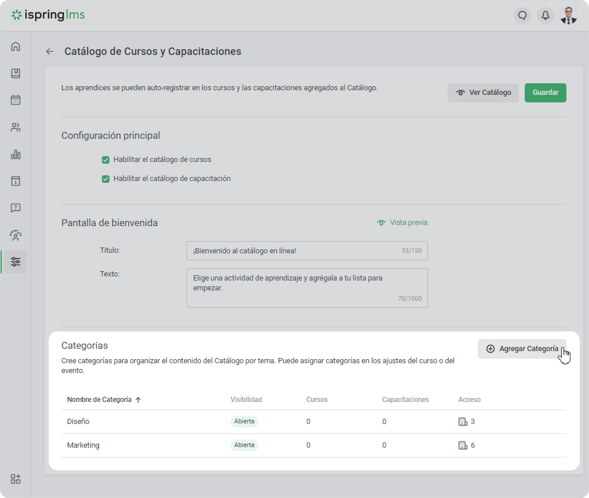 2. Ve a la sección Categorías y haz clic en Agregar Categoría.