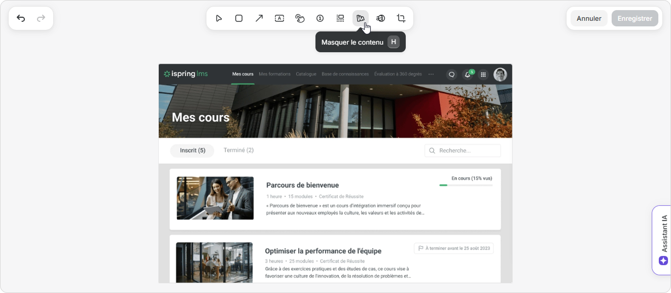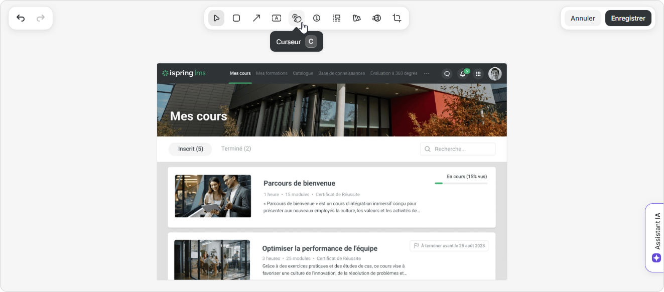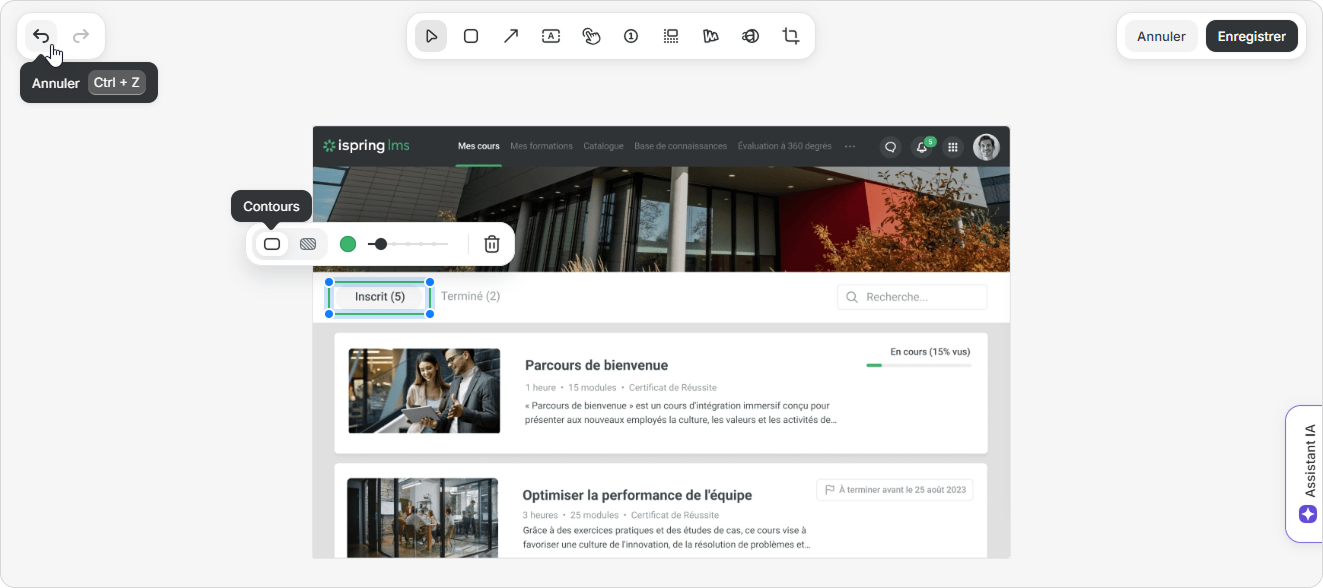 La loupe est parfaite pour mettre en évidence de petits éléments comme des boutons ou des URL que les apprenants pourraient facilement manquer.