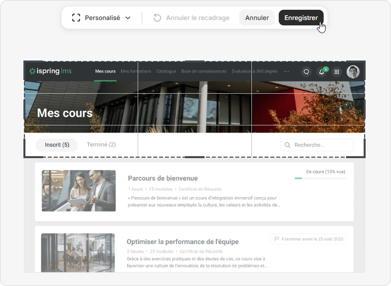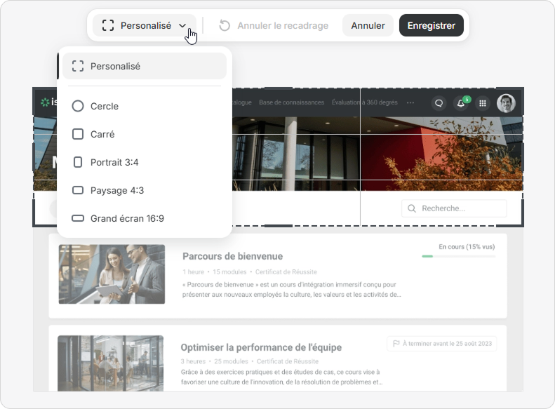1. Cliquez sur Recadrer dans le menu supérieur.