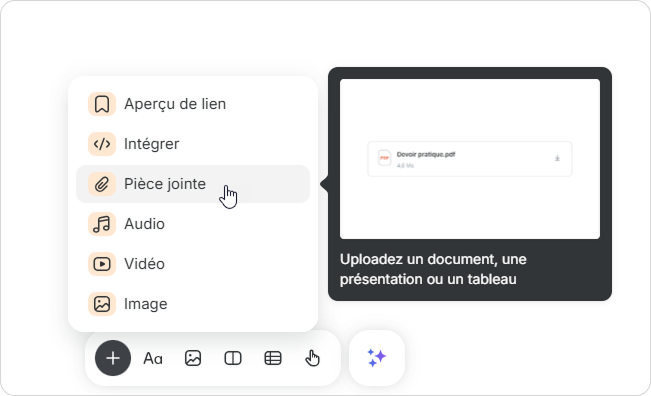 Vous pouvez ajouter des pièces jointes directement à la page. Les utilisateurs peuvent ensuite télécharger les fichiers joints et étudier le contenu.