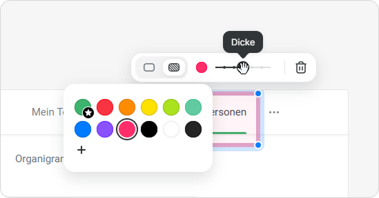 - Wählen Sie die Farbe des Rechtecks und die Dicke der Umrandung aus.
