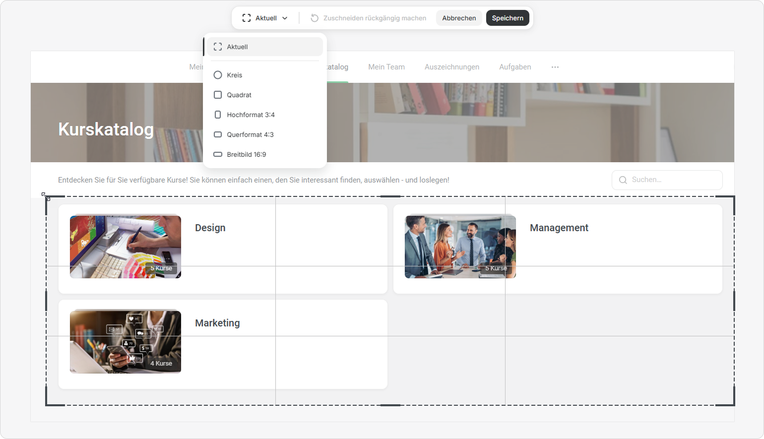 - Wählen Sie die Form aus, in die Sie das Bild zuschneiden möchten.