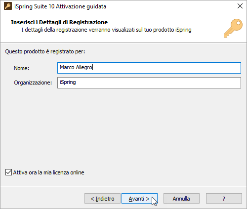 • l’attivazione con una chiave di licenza è possibile solo se hai acquistato iSpring Suite Basic.