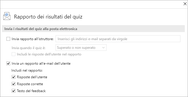 1. Seleziona la casella Invia rapporto all'istruttore e inserisci uno o più indirizzi e-mail nella casella di testo accanto.