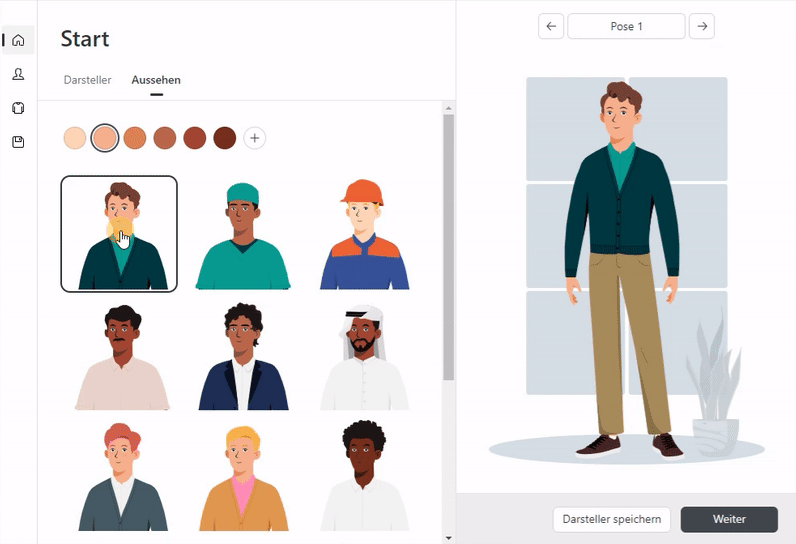 Jetzt können Kursautoren benutzerdefinierte Darsteller, die ihrer Markenidentität entsprechen und die reiche Vielfalt unserer Welt widerspiegeln, ganz einfach direkt in der iSpring Suite erstellen und bearbeiten! Mit unserem neuen Darstellerersteller können Sie das bevorzugte Aussehen und die Kleidung Ihrer Darsteller auswählen und sie mit nur wenigen Klicks zu Folien hinzufügen.