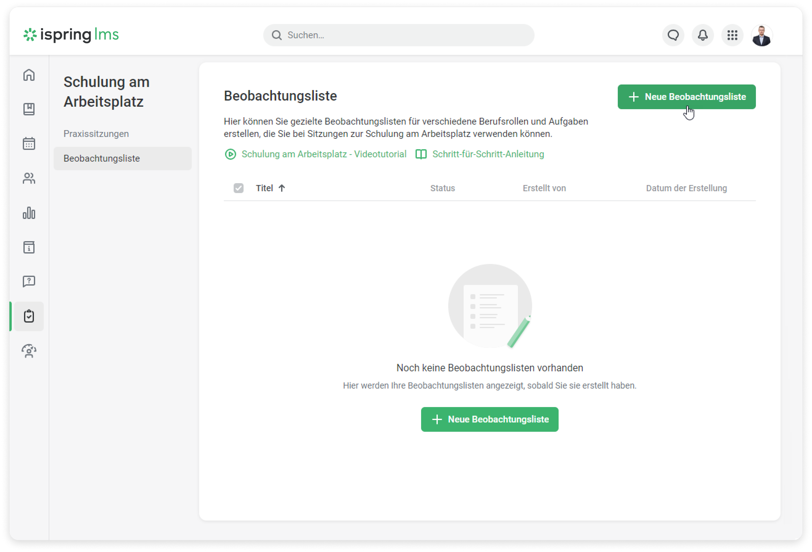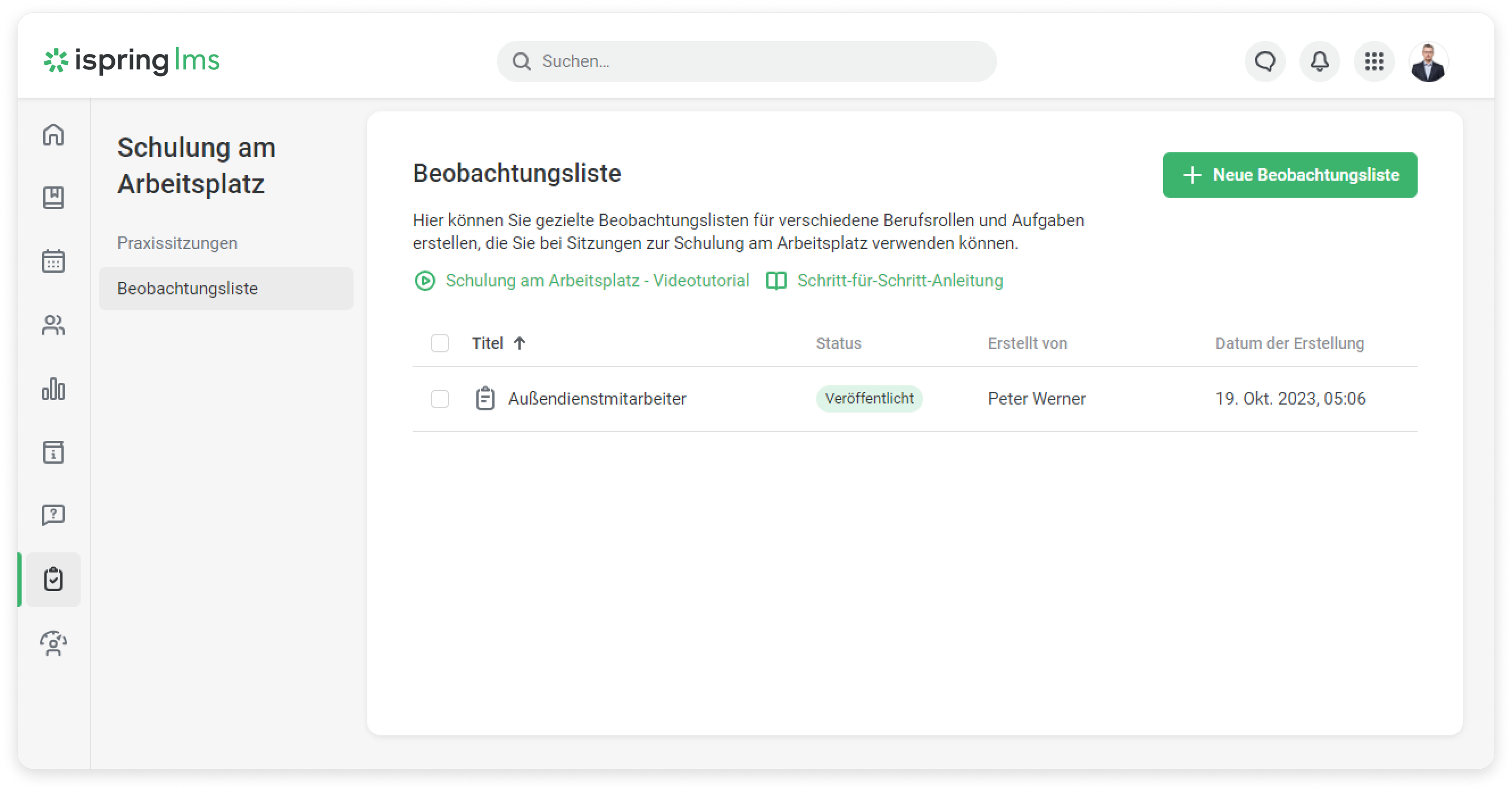 Perfekt! Die Beobachtungs-Checkliste ist erstellt, jetzt können Sie eine OJT-Sitzung erstellen.