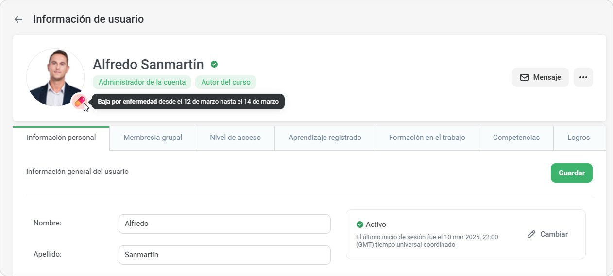Los empleados pueden ver el estado de baja laboral de un compañero en el Portal del usuario en la web y en dispositivos móviles.
