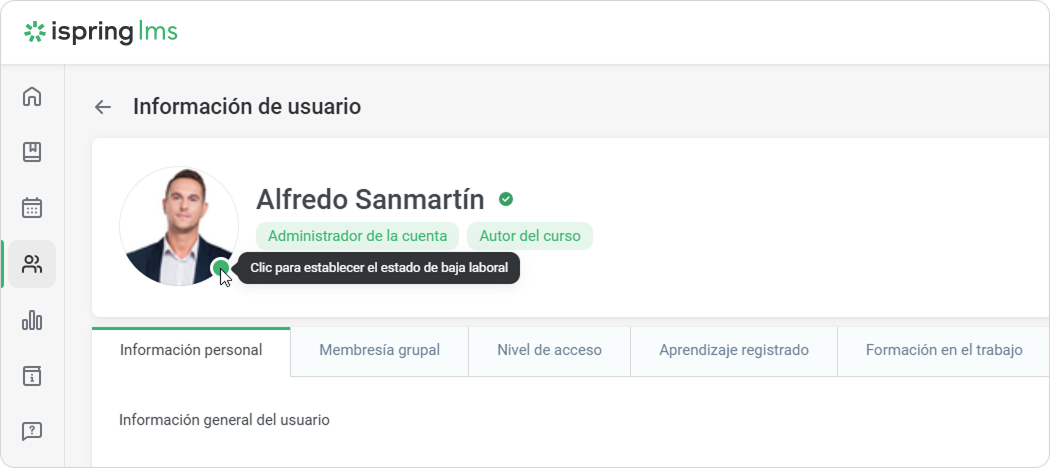 - Vaya a la sección Usuarios y abra la ficha del empleado. Después haga clic en el icono de estado.