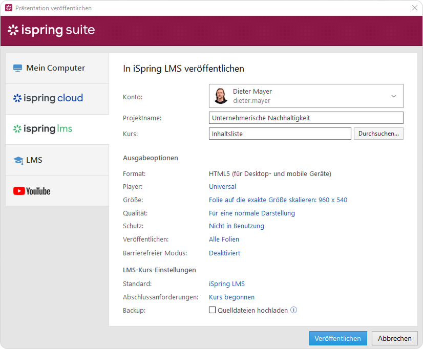 So veröffentlichen Sie Ihre Präsentation in iSpring LMS: